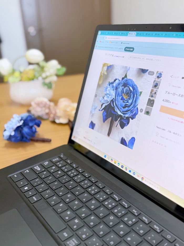 この日はアレンジメント作りは一旦お休みし、ハンドメイドサイトminneのショップオープンに向けて、商品を数点掲載していきました。