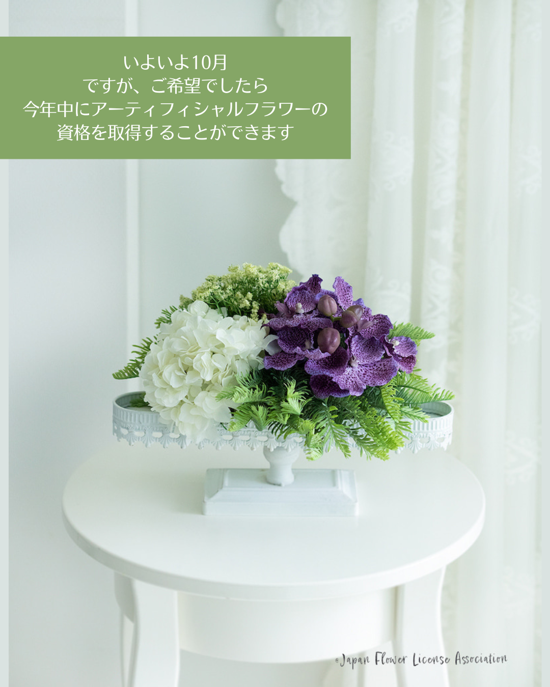 日本花資格協会(JFLA)の「アーティフィシャルフラワー検定2級」は全12レッスン。
